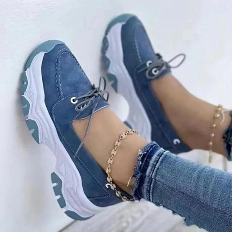 Женская летняя новая простая однотонная вулканизированная обувь на толстой подошве для повседневного отдыха на открытом воздухе со шнуровкой для походов и спорта