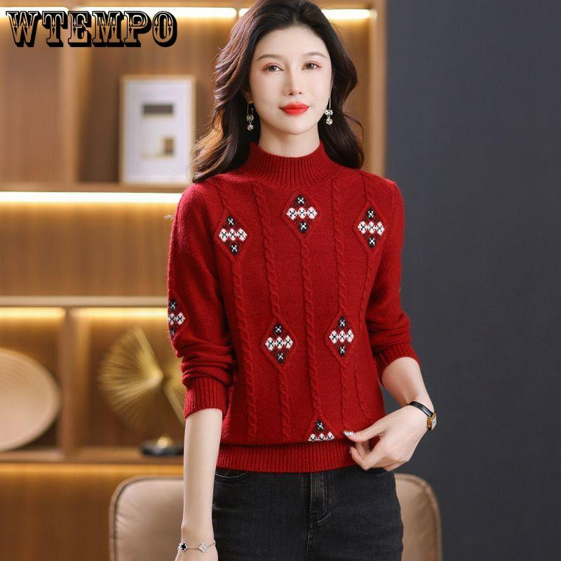 Трикотажный свитер осень и зима новый полувысокий ворот свитер трикотаж свободный жаккардовый пуловер с длинными рукавами базовая рубашка — купить товар онлайн с бесплатной доставкой по всему миру!