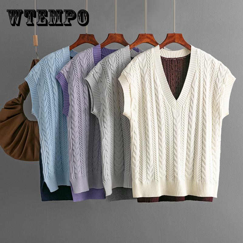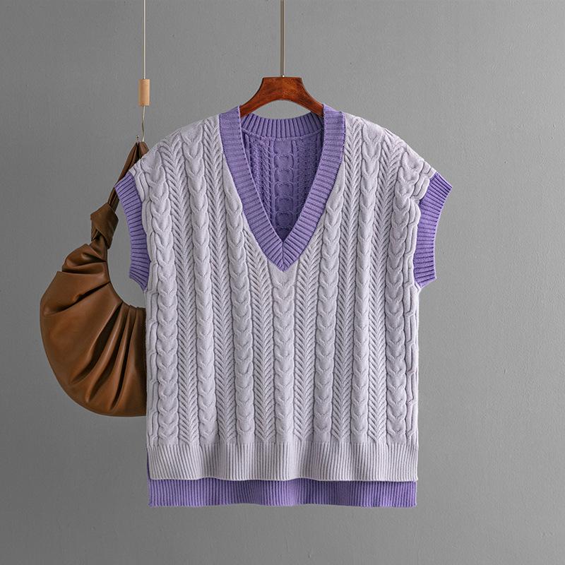 Зимний свитер Европейский и американский вязаный жилет пуловер жилет с V-образным вырезом свитер без рукавов топ для женщин