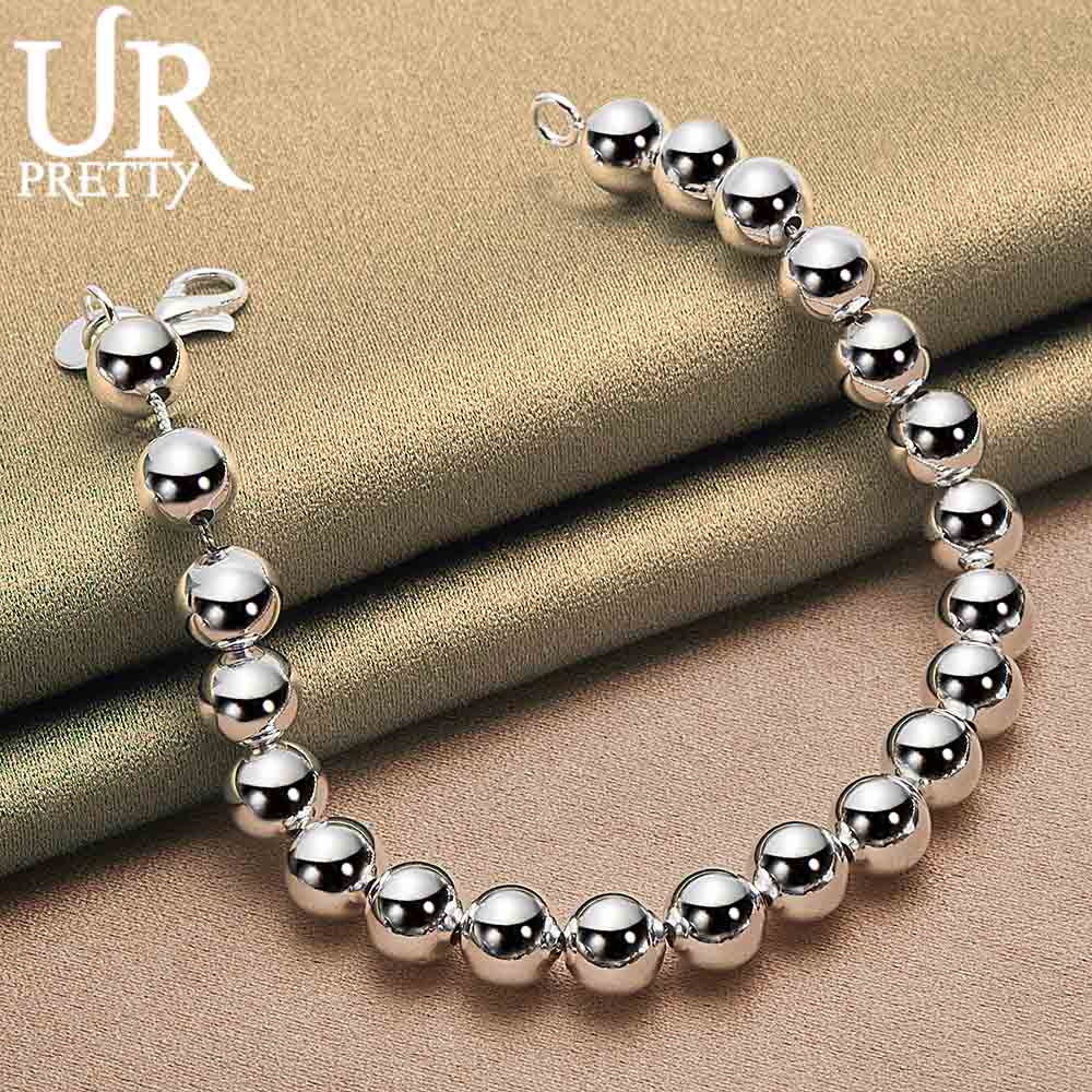Браслет-цепочка из стерлингового серебра 925 пробы с круглыми бусинами 8 мм, модные свадебные украшения — купить товар онлайн с бесплатной доставкой по всему миру!