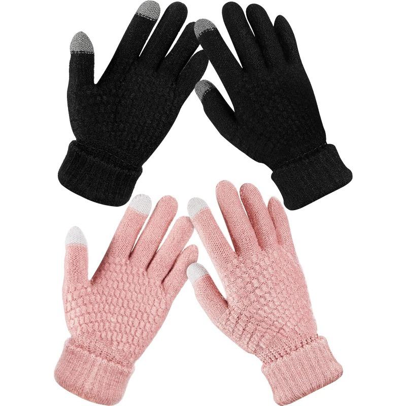 2 пары женских зимних перчаток для сенсорных экранов, теплые трикотажные перчатки с флисовой подкладкой, эластичные манжеты, зимние перчатки для отправки текстовых сообщений — купить товар онлайн с бесплатной доставкой по всему миру!