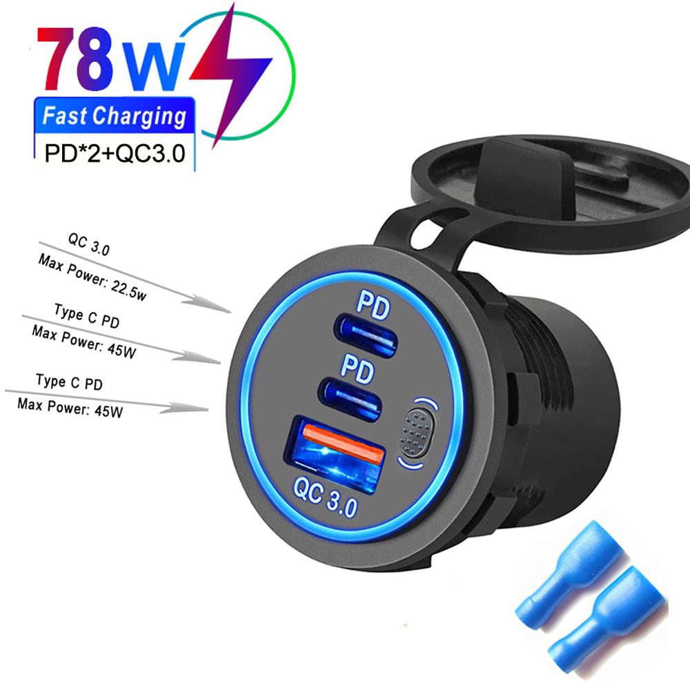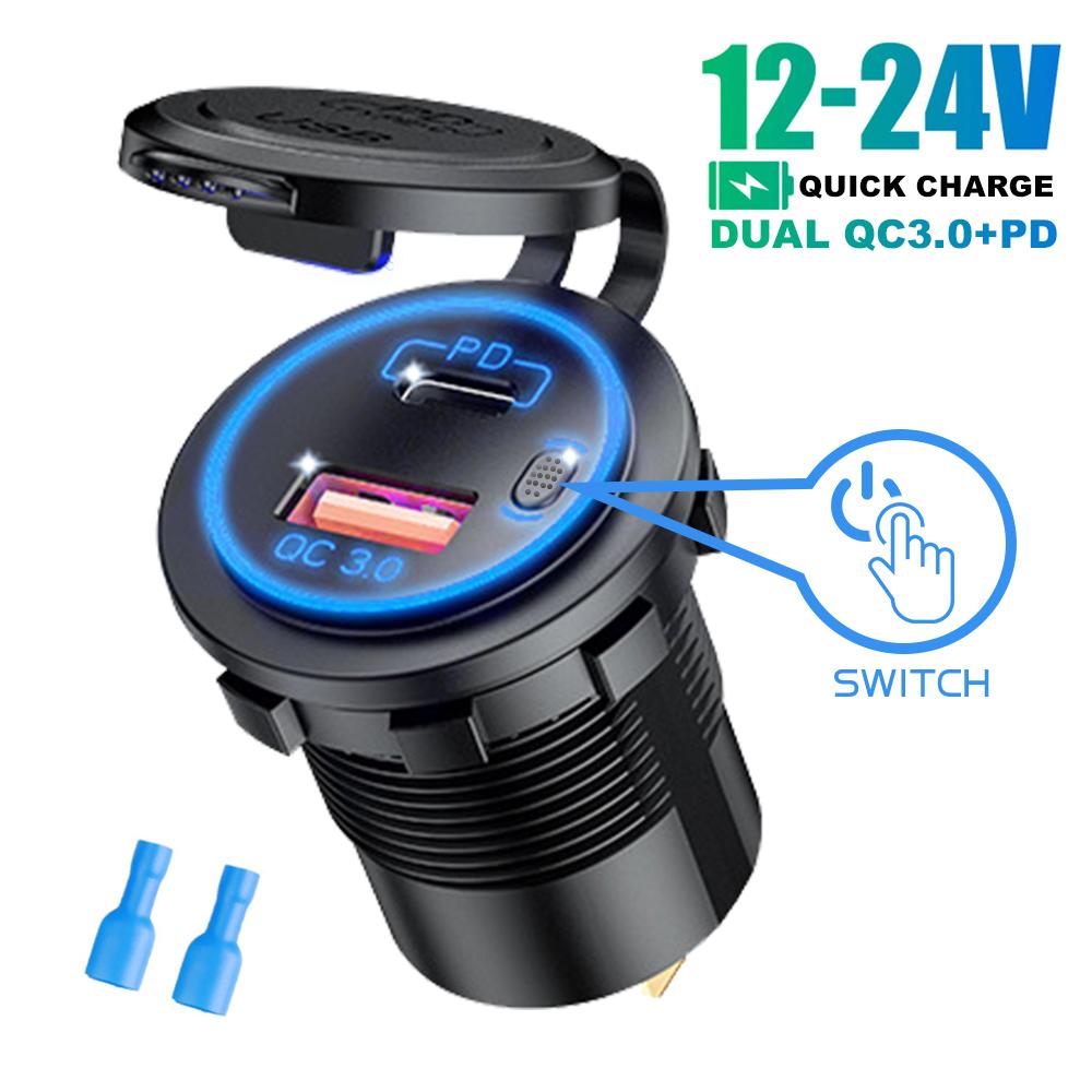 78 Вт Dual PD QC3.0 автомобильное зарядное устройство водонепроницаемое быстрая зарядка 3.0 розетка с переключателем для 12 В/24 В мотоцикла грузовика лодки