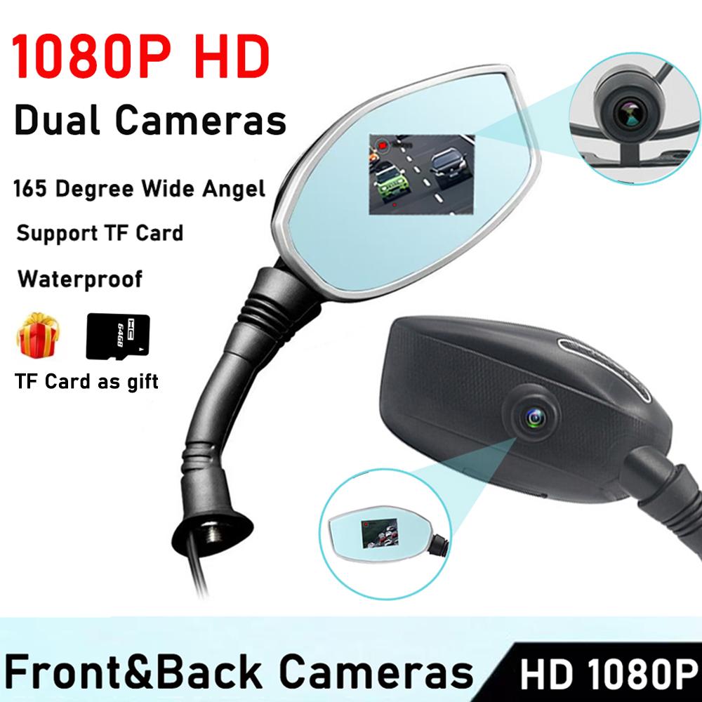 1080P+1080P Full HD мотоциклетный видеорегистратор DVR с двумя объективами, зеркалом заднего вида, широкоугольным цифровым видеорегистратором на 165 градусов