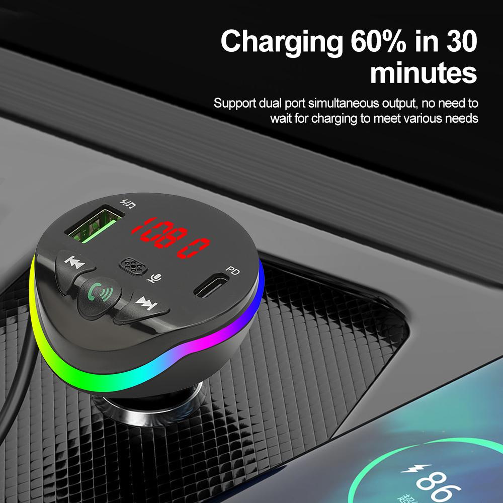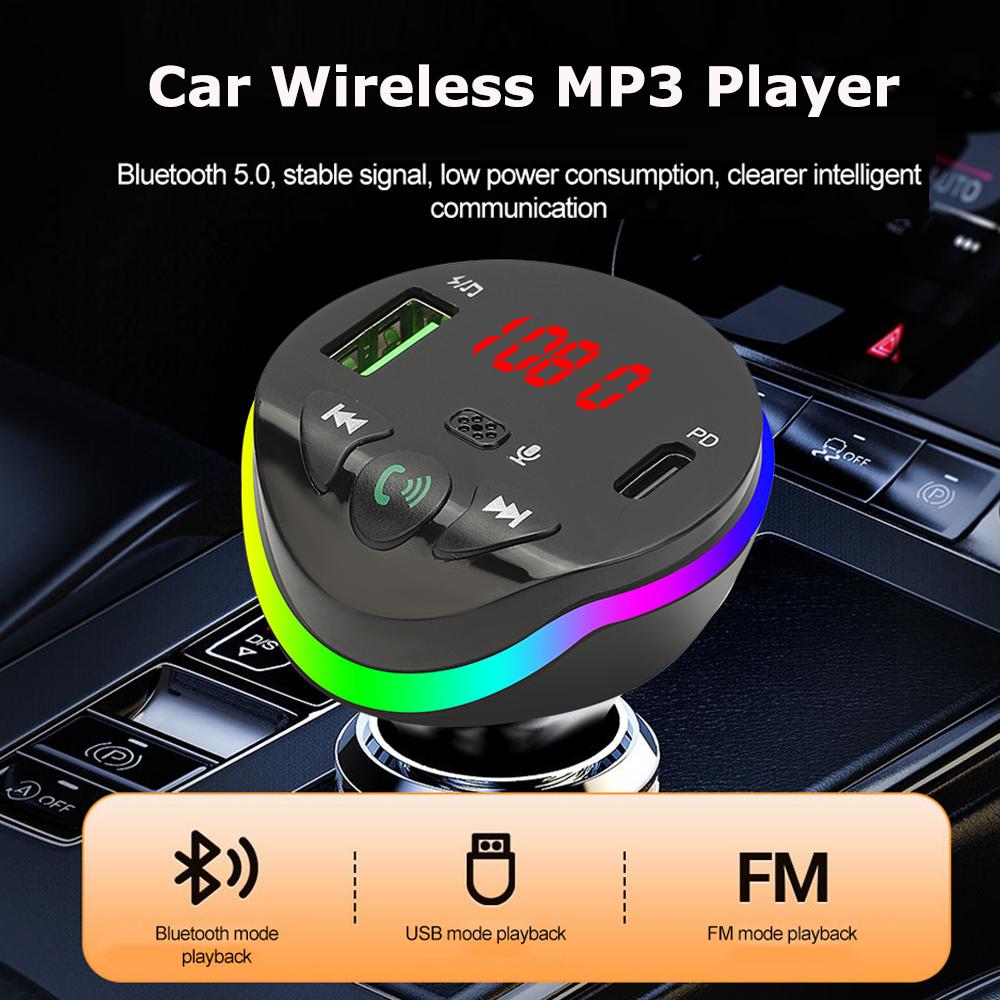 Автомобильный FM-передатчик Bluetooth 5.0, быстрое зарядное устройство для автомобиля с подсветкой, беспроводной MP3-плеер с функцией громкой связи, автомобильный комплект аудиоприемника