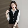 Женский шикарный трикотажный жилет из полиэстера | Жилет-свитер с V-образным вырезом и косами | Однотонный трикотаж без рукавов | Модный многослойный топ на осень/зиму