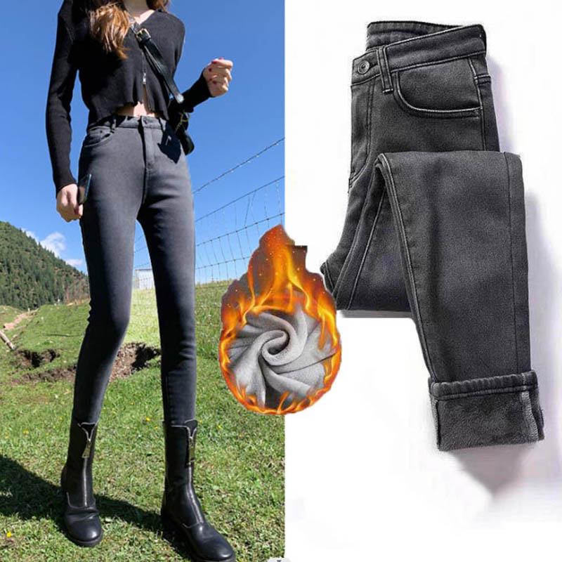 Женские теплые джинсы Зимние теплые плюшевые джинсы Эластичные утолщенные джинсовые брюки Повседневные брюки — купить товар онлайн с бесплатной доставкой по всему миру!