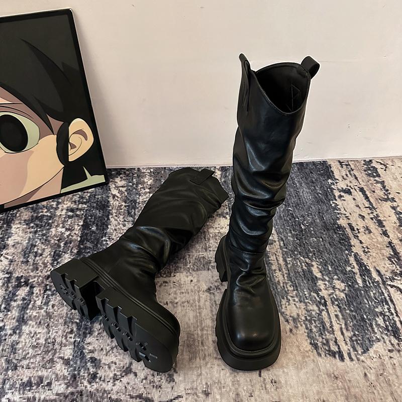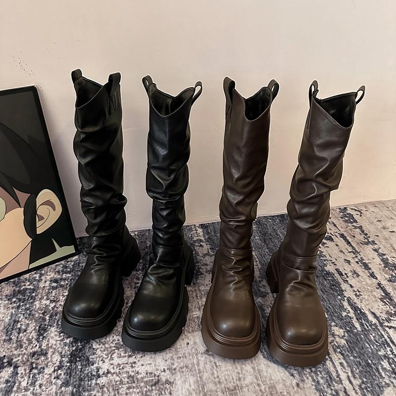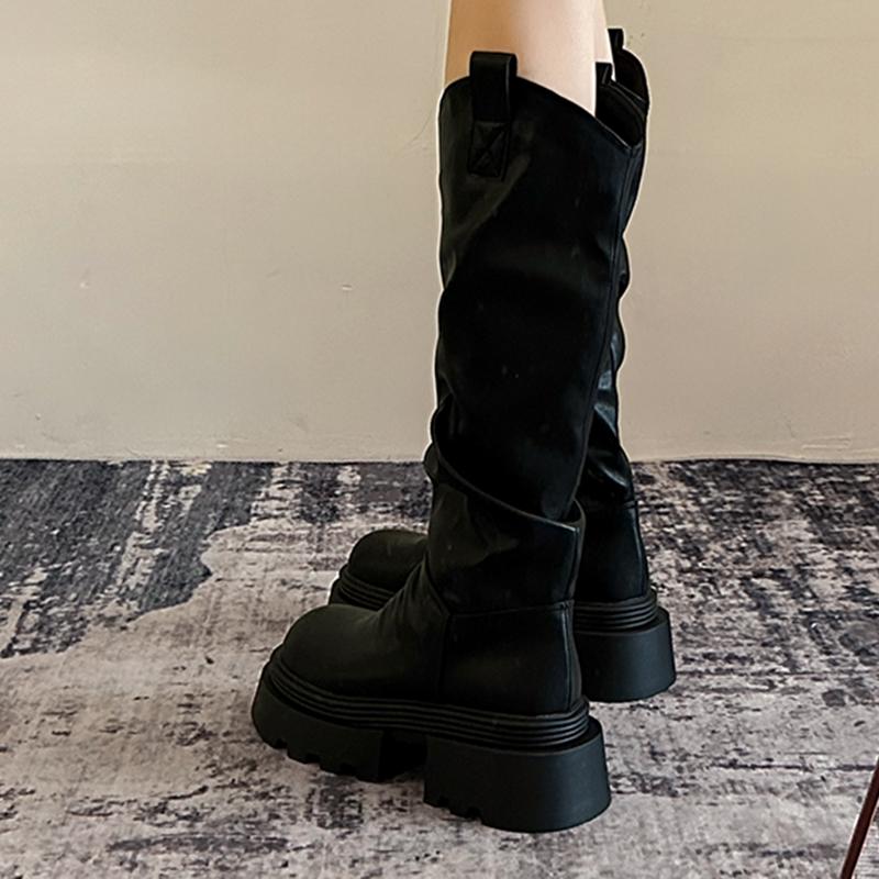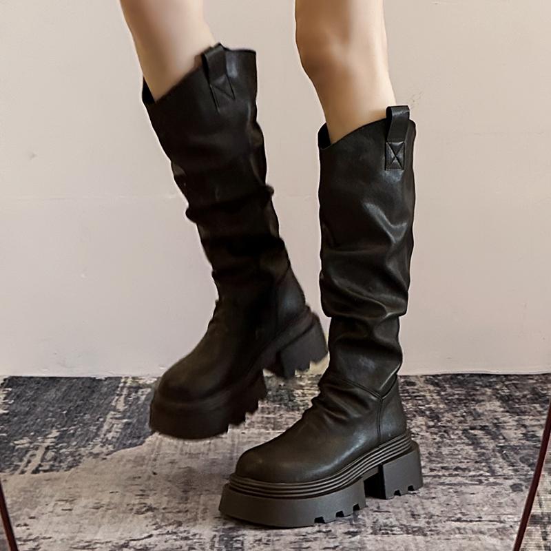 Мода винтажные рыцарские женские ботфорты до колена модные слипоны длинные ботильоны осень зима платформа каблуки женская обувь