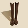 Мода Винтаж Зимние женские сапоги выше колена Модные молнии сзади Толстые каблуки Длинные сапоги Женские сапоги Largas
