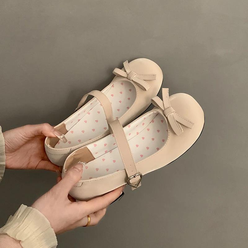 Мода осень женщины Мэри Джейн Туфли Мода Бабочка-узлом Дамы Комфорт Круглый носок Низкий каблук Обувь