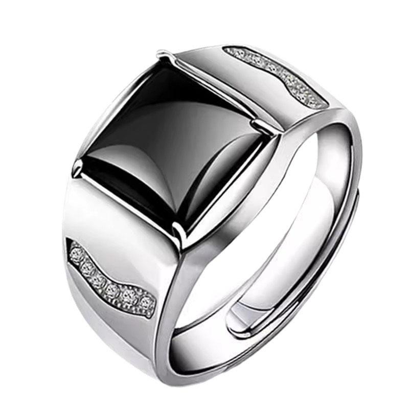 Модное мужское кольцо из стерлингового серебра 925 пробы с доминирующим черным агатом и кристаллами, квадратное кольцо, простое регулируемое украшение на палец KOFSAC — купить товар онлайн с бесплатной доставкой по всему миру!