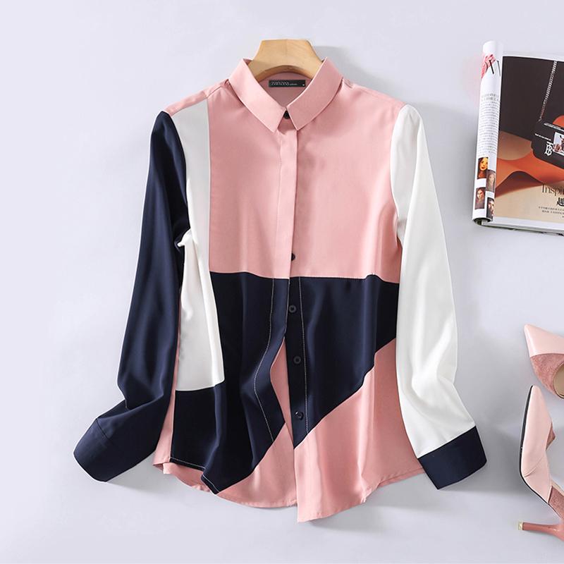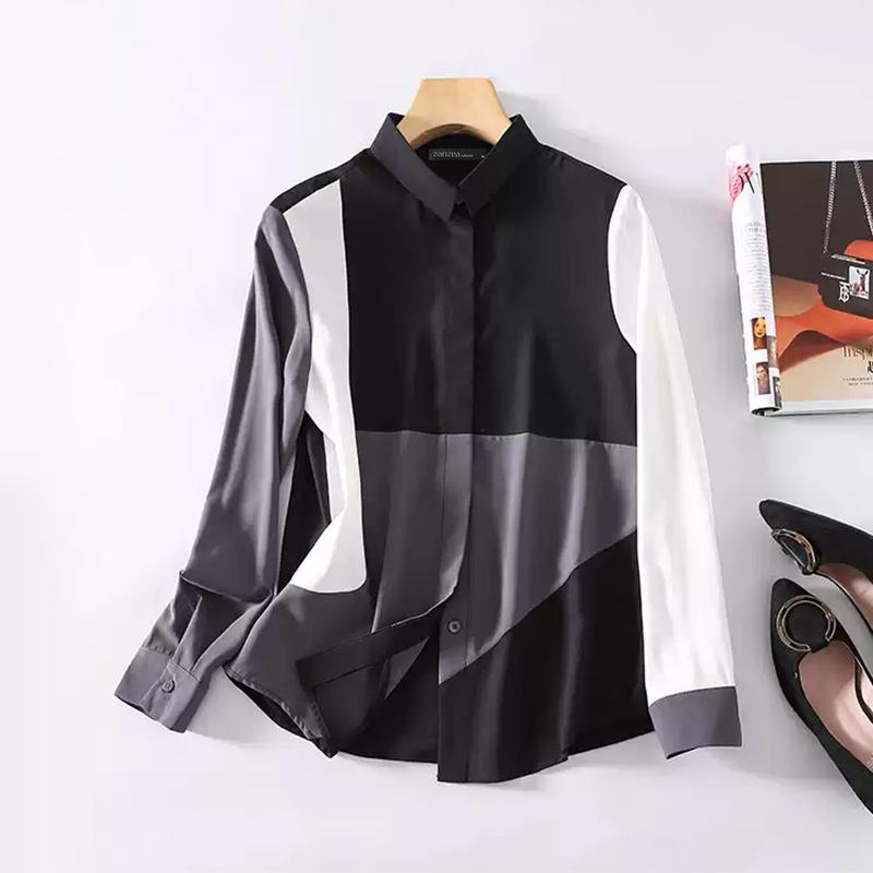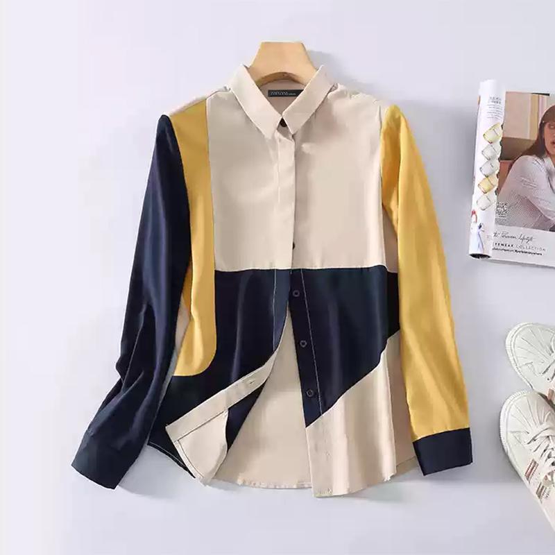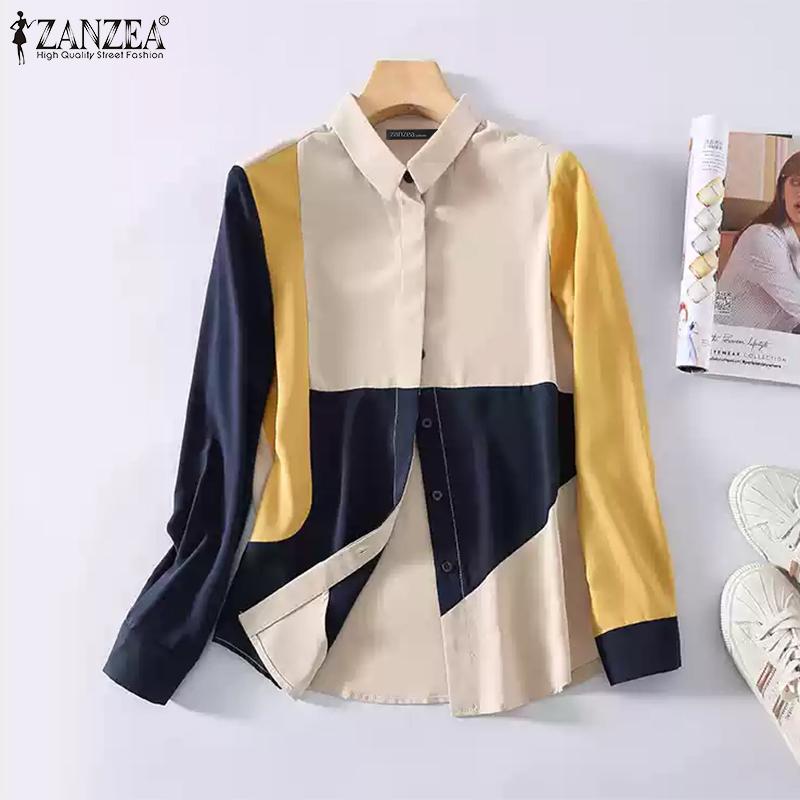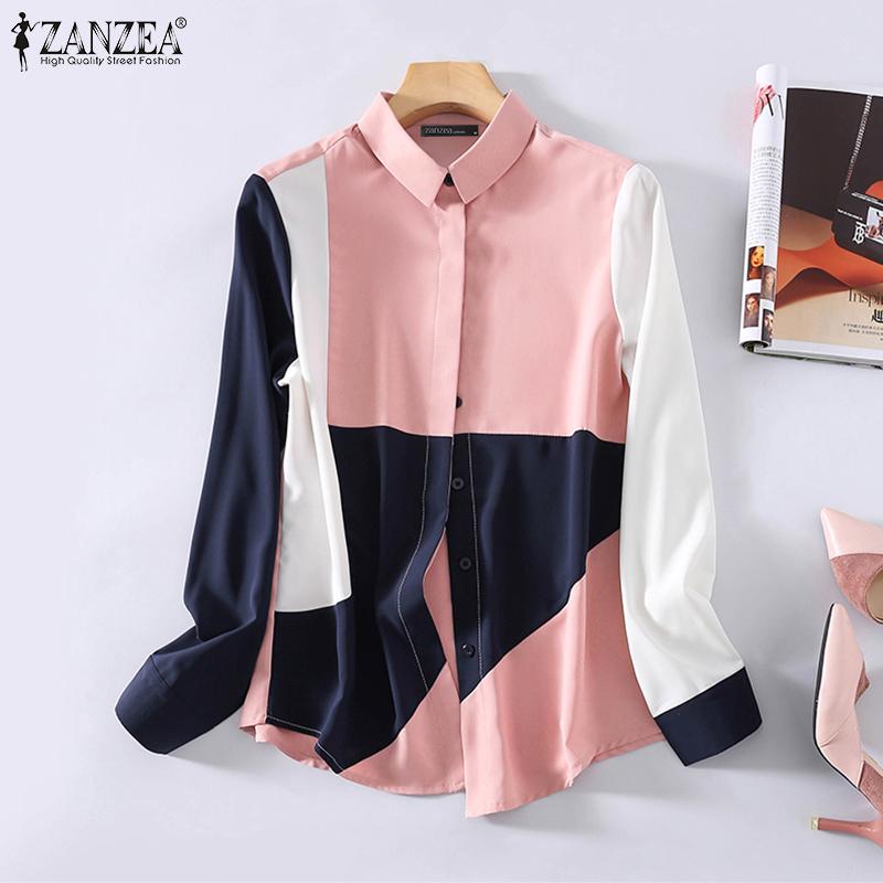 ZANZEA Женские рубашки с воротником-стойкой и длинным рукавом контрастного цвета