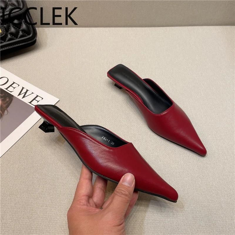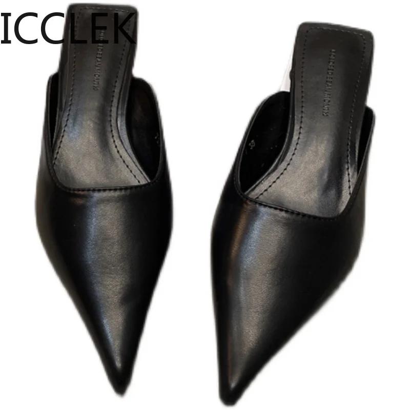 Модные дизайнерские женские туфли-мюли с острым носком, модные неглубокие туфли без застежек, элегантные женские туфли на низком каблуке для отдыха на открытом воздухе