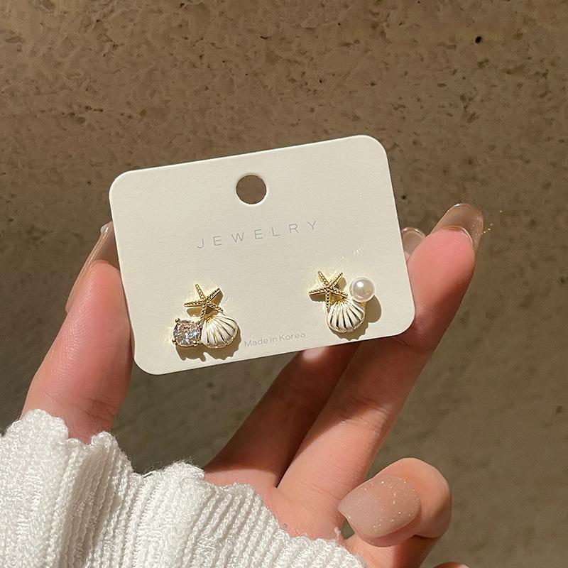 Новые асимметричные серьги-гвоздики с имитацией жемчуга и эмалью в виде морской звезды для женщин, свадебные украшения для девушек, леди, темперамент, кулон