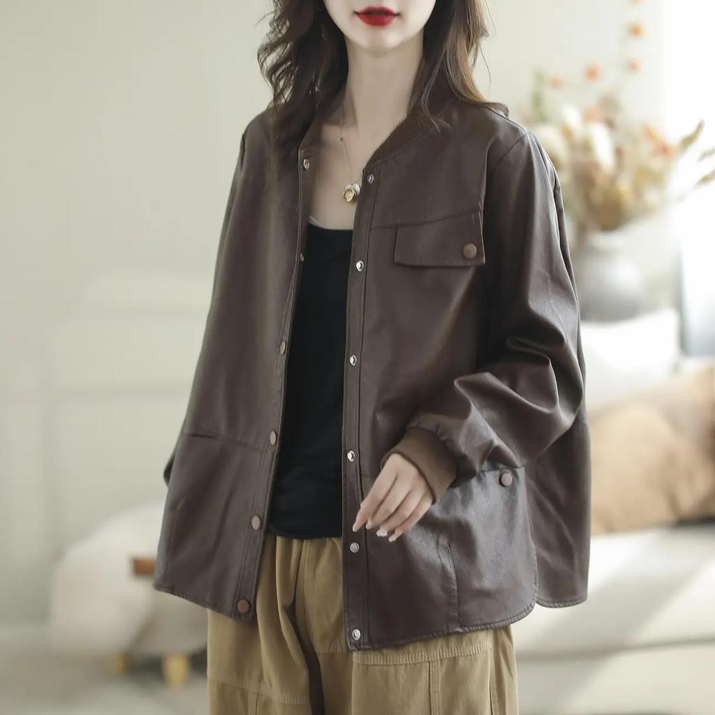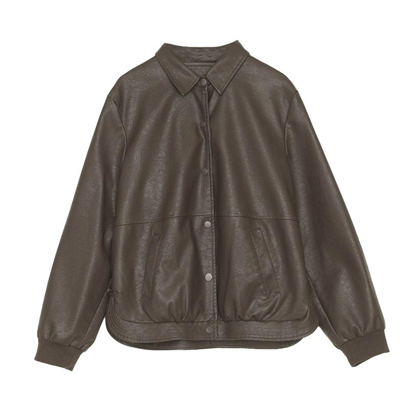 Кожаная куртка женская осенняя одежда женская однотонная блузка сшитая модная повседневная женская куртка из искусственной кожи