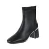 Женские однотонные модные туфли на высоком каблуке с застежкой-молнией сзади Модные ботинки Высокие ботинки Кожаные туфли Ботинки средней высоты Женская обувь