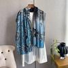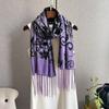 Этнический стиль кружевной шелковый шарф женский тренд мода бахрома вышивка тренд тонкий шарф шаль