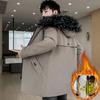 Зимняя куртка с хлопковой подкладкой, мужская куртка средней длины с капюшоном, хлопковая подкладка плюс утолщение из бархата
