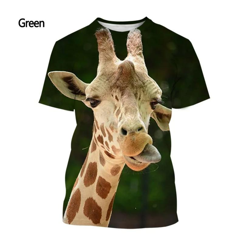 Футболки с коротким рукавом с принтом жирафа в 3D для мужчин и женщин, повседневная уличная одежда в стиле Харадзюку, свободная одежда унисекс