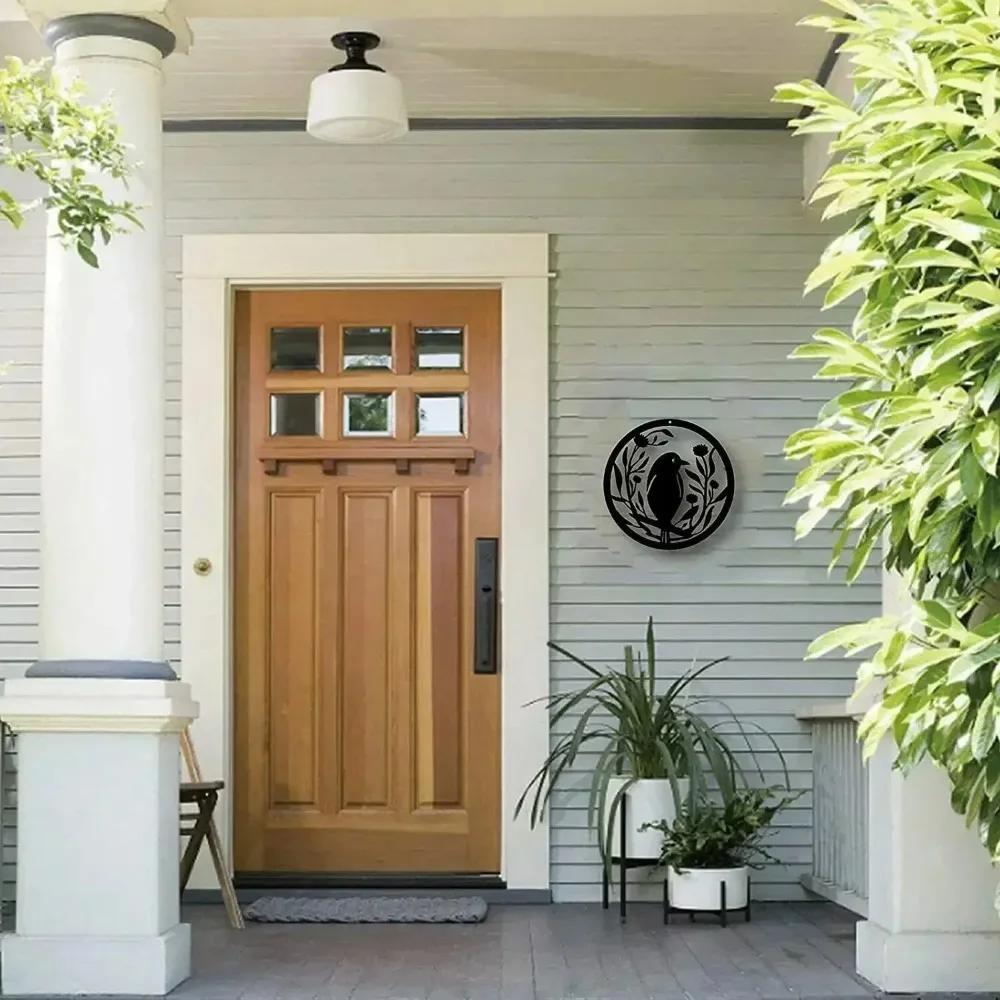 Металлическое настенное искусство «Цветок и птица» - Круглая железная скульптура 30 см, Настенный декор для подвешивания, Произведение искусства и Декоративная наклейка на стену