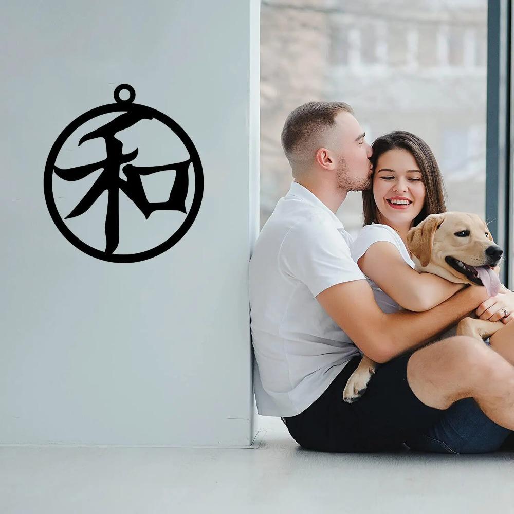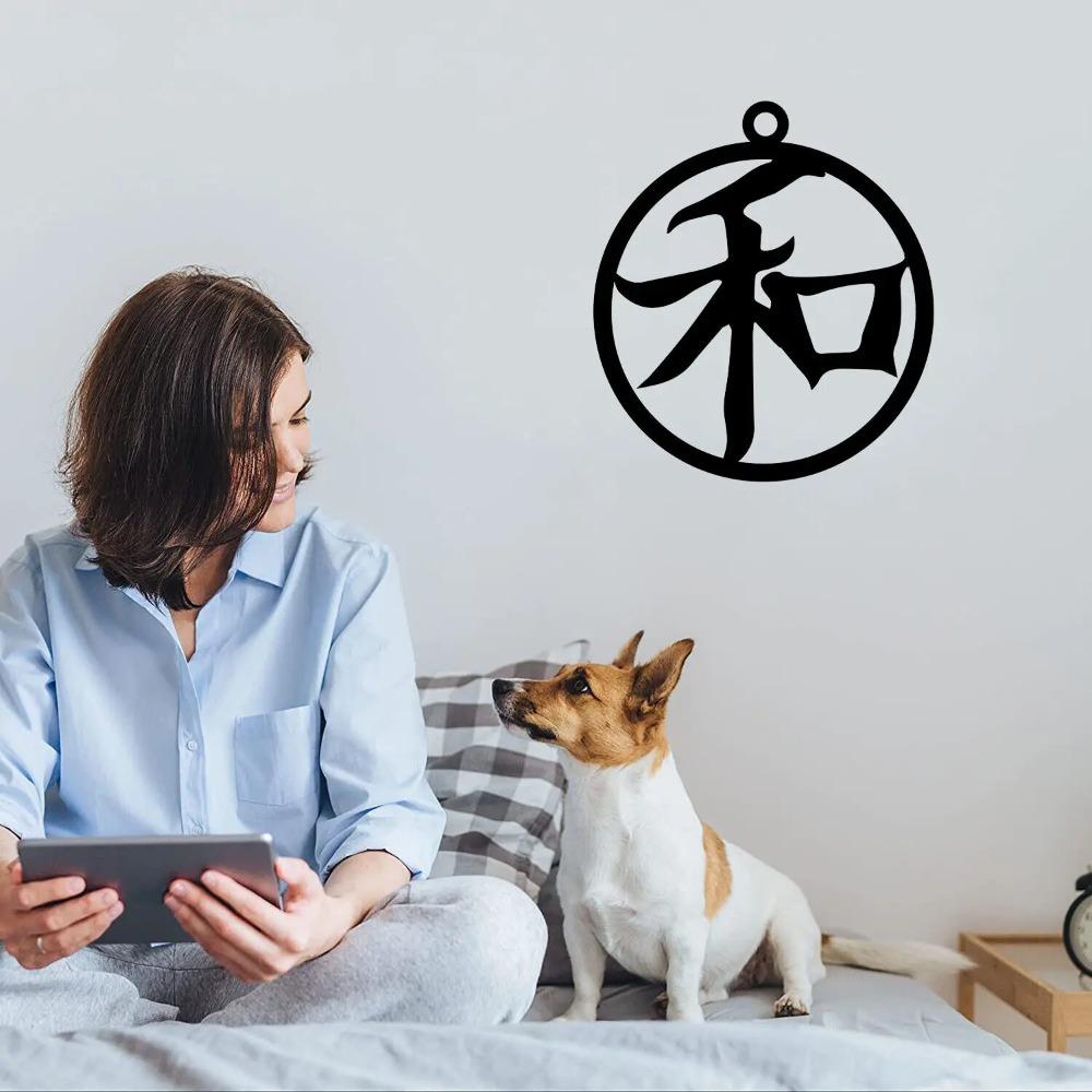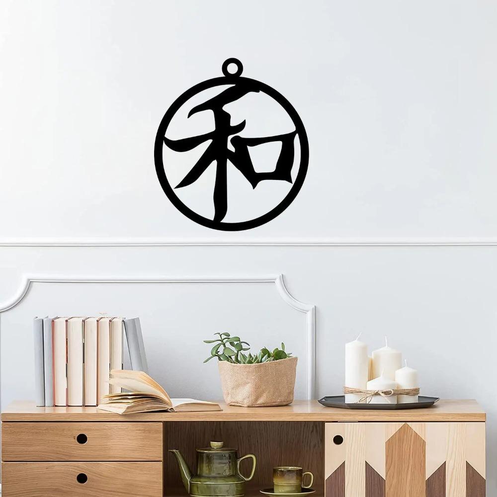 Настенный металлический знак с иероглифом «Мир» Японское/китайское искусство гармонии фэн-шуй, декоративные изделия из железа для украшения стен и подвешивания на стену