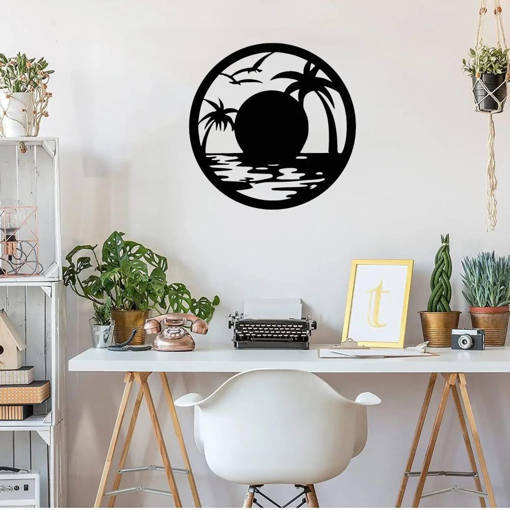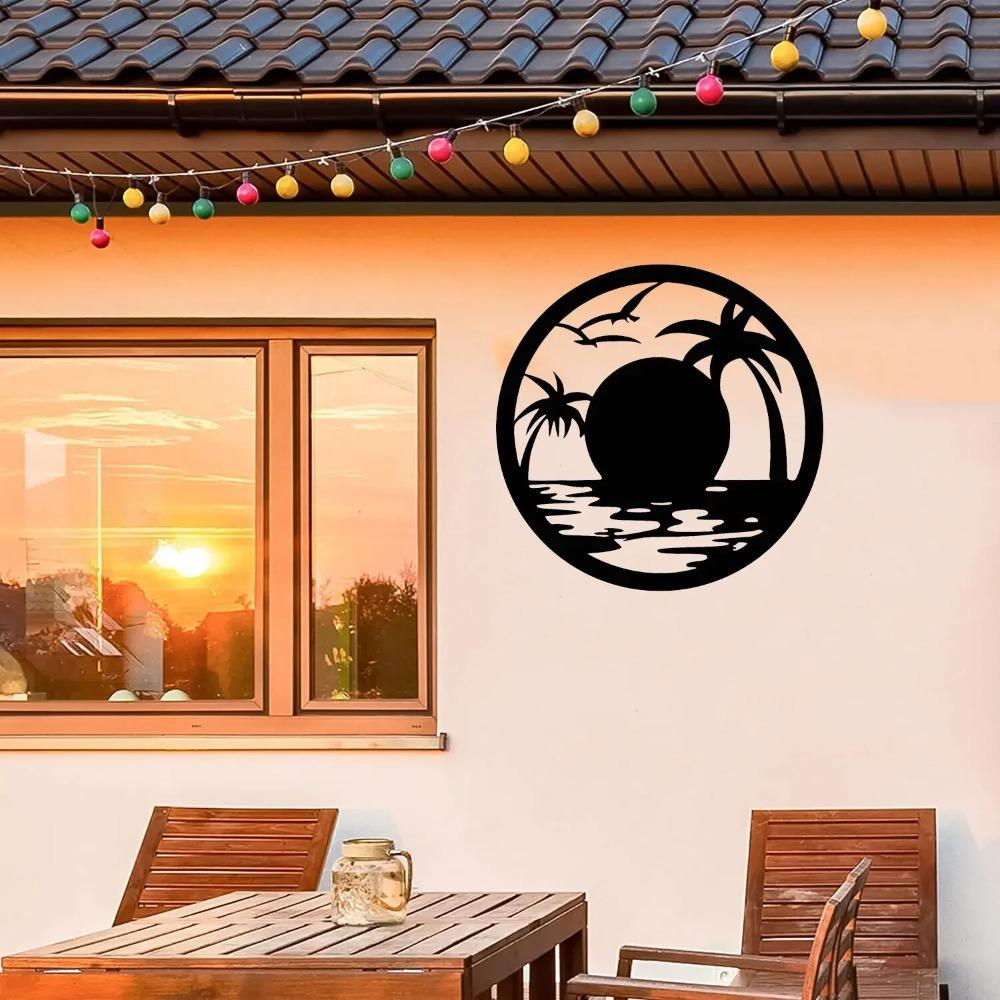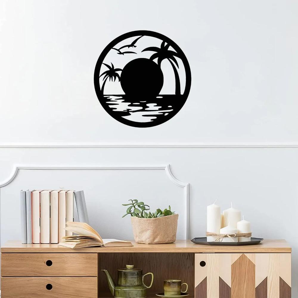 Декорация для стен с изображением заката на пляже – металлическое искусство с декоративным силуэтом из железа, элегантные настенные таблички и наклейки для домашнего декора