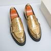 Мужские кожаные модные туфли золотистого цвета для вечеринок, свадеб, офиса, мокасины с двойной пряжкой, туфли-оксфорды на толстой подошве для бизнеса и отдыха