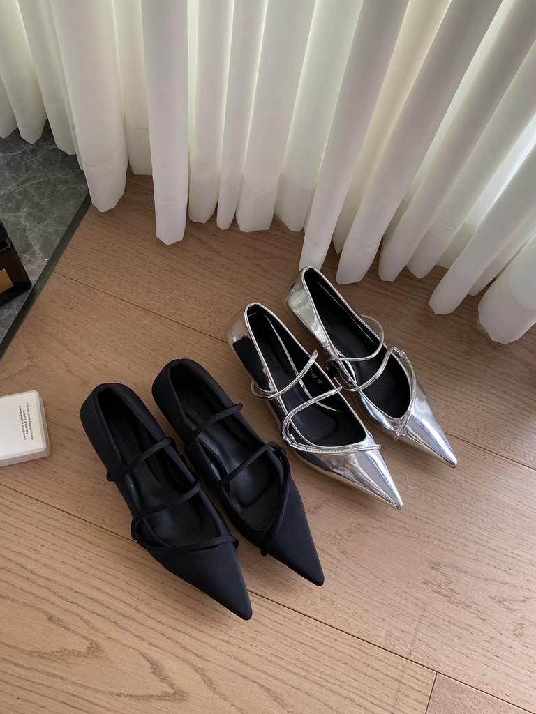 Модные туфли-лодочки с острым носком для женщин 2024 года. Новые поступления. Модные туфли на тонком среднем каблуке. Серебристо-черные туфли для офиса и вечеринок. Туфли с перекрещивающимися резинками. — купить товар онлайн с бесплатной доставкой по всему миру!