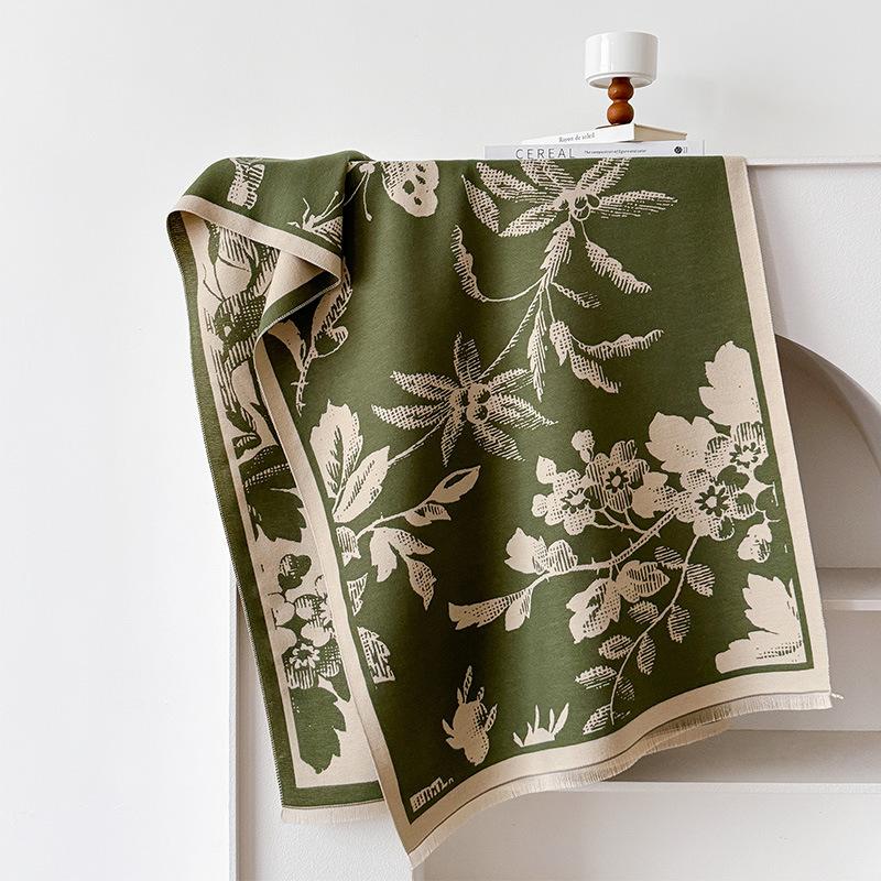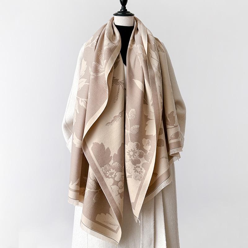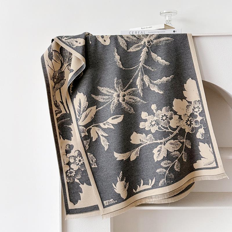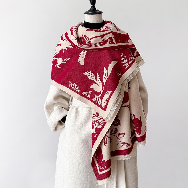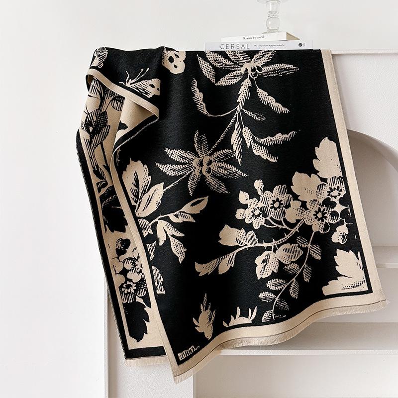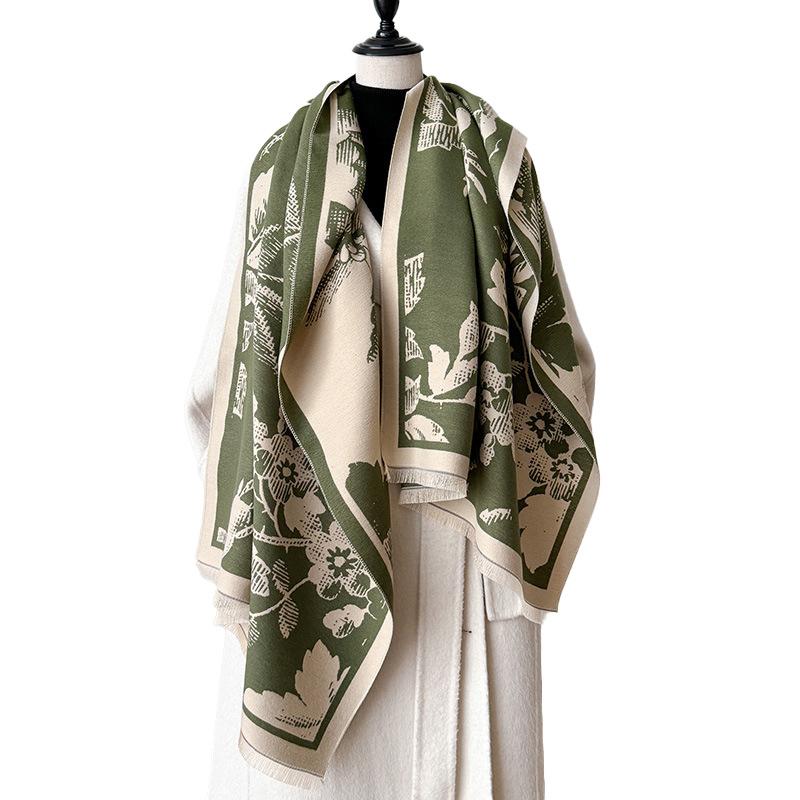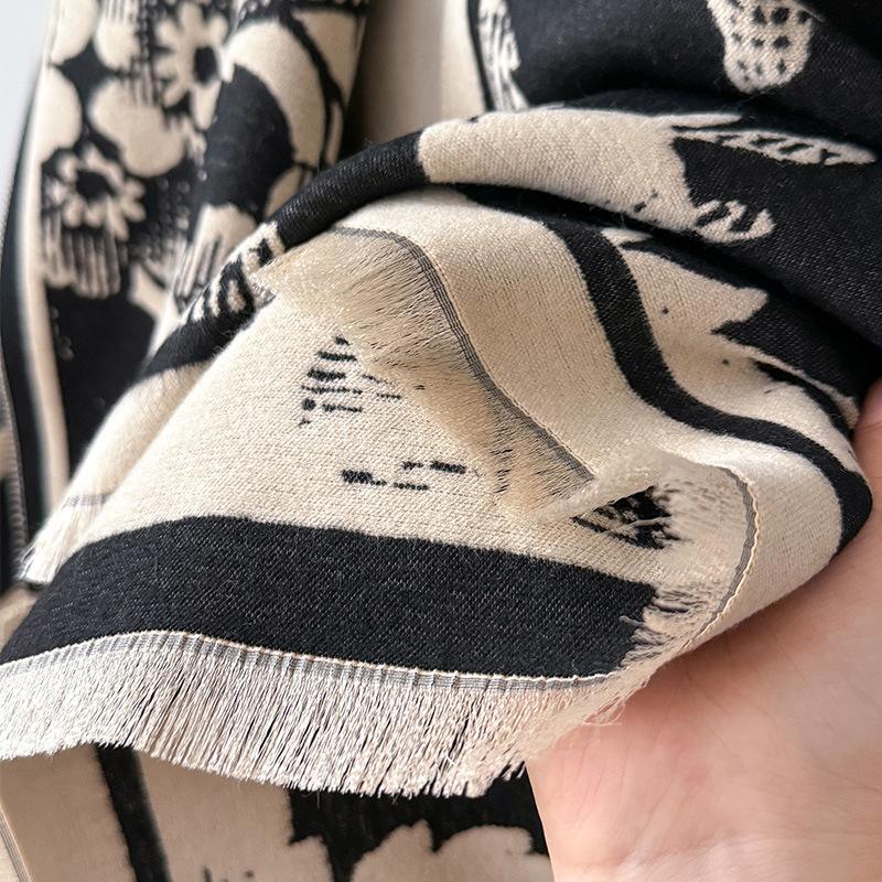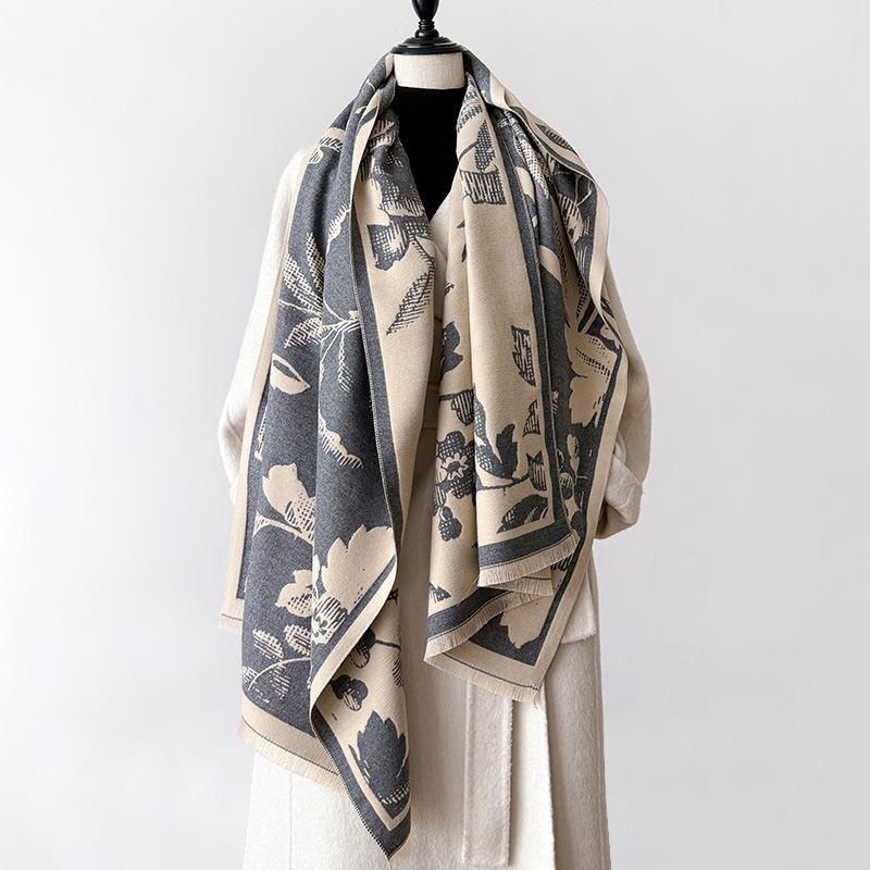 Контрастный двухсторонний шарф в девчачьем стиле с изображением лесной листвы зимой, ощущение тепла высшего класса