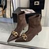 Мода 2024 Новые поступления Женские ботильоны Chelsea Botas Тонкие средние каблуки Металлическая цепочка Размер 35-40 Осень Зима Носки Botas Размер 35-40