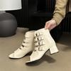 Модные сексуальные женские ботильоны с открытым носком, черные, белые, с пряжкой на поясе, летние короткие ботинки с застежкой-молнией сзади 2024 года, новые поступления, модные ботильоны на плоской подошве