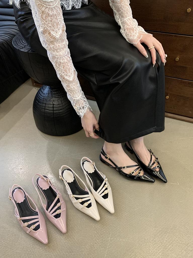 Модные женские сандалии с острым носком, узкие, на низком плоском каблуке, розовые, черные, белые, с пряжкой на ремне сзади, летние сандалии, мюли, обувь для женщин, размер 39