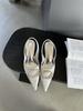 Мода Остроносые женские сандалии Тонкий высокий каблук Задний ремешок 2024 Новые поступления Модная обувь для вечеринок Черный Розовый Бежевый Серый Кристалл