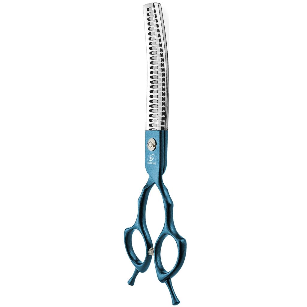 SANGELAR 6,5-дюймовые синие изогнутые ножницы для груминга домашних животных, могут сгибаться вверх и вниз, удаляют 20%-35% и 45%-60% волос, высококачественный инструмент для груминга
