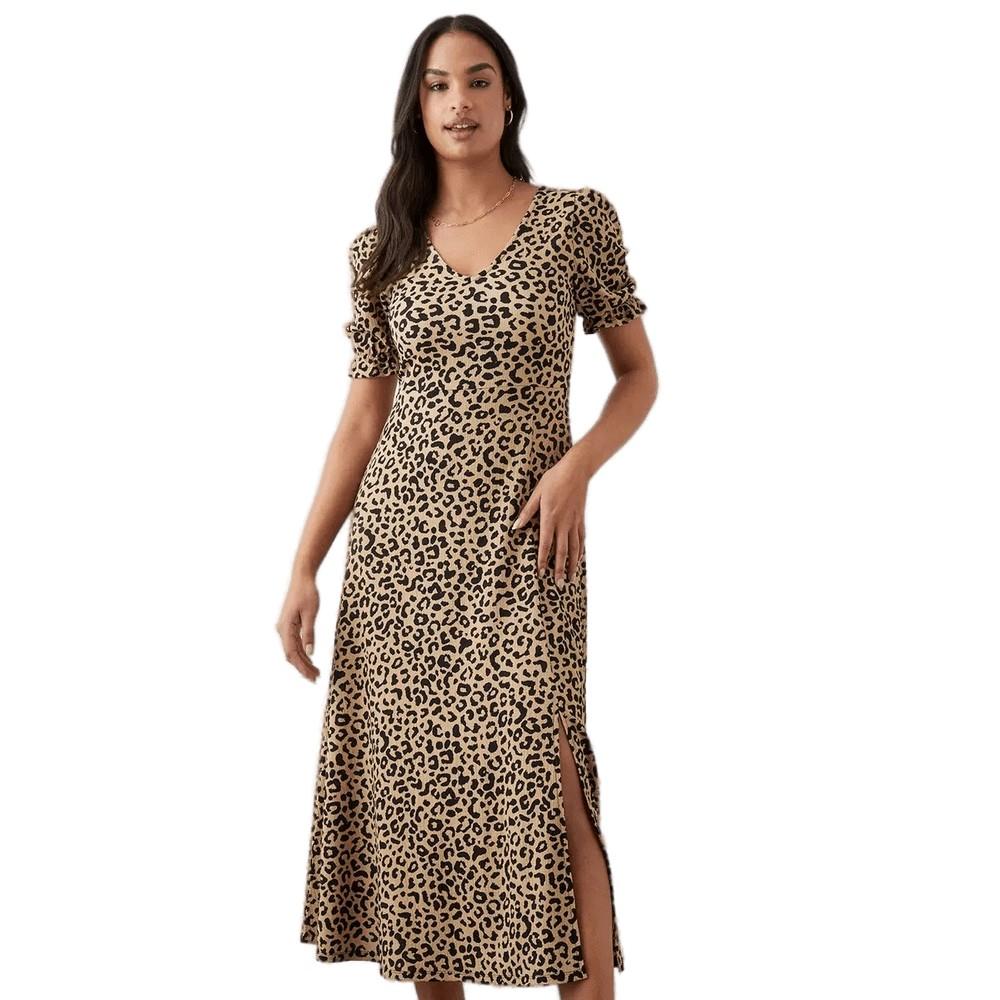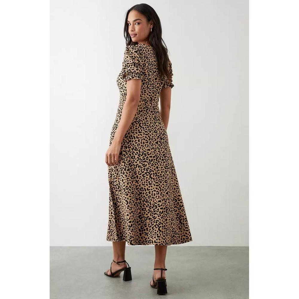Dorothy Perkins Женское/женское платье миди с леопардовым принтом и короткими рукавами