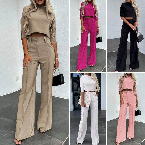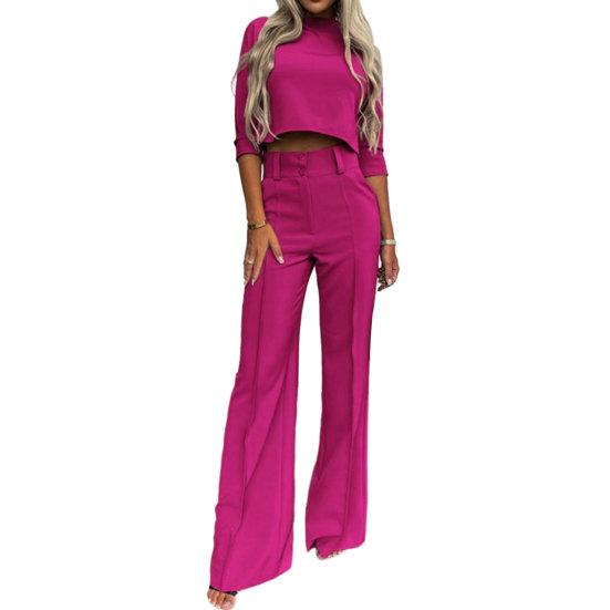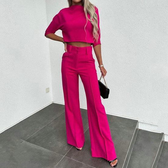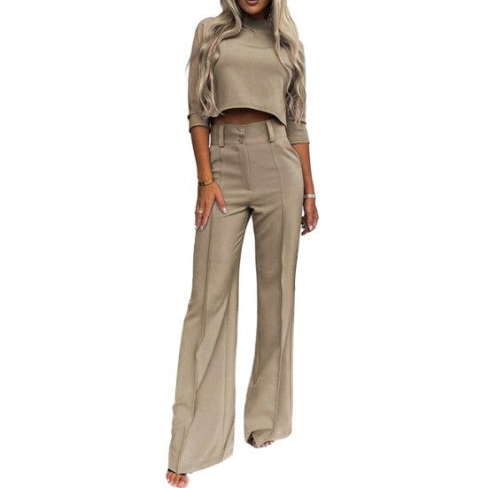 Элегантный комплект из двух предметов: топ узкого кроя и широкие брюки с высокой талией для изысканного образа.