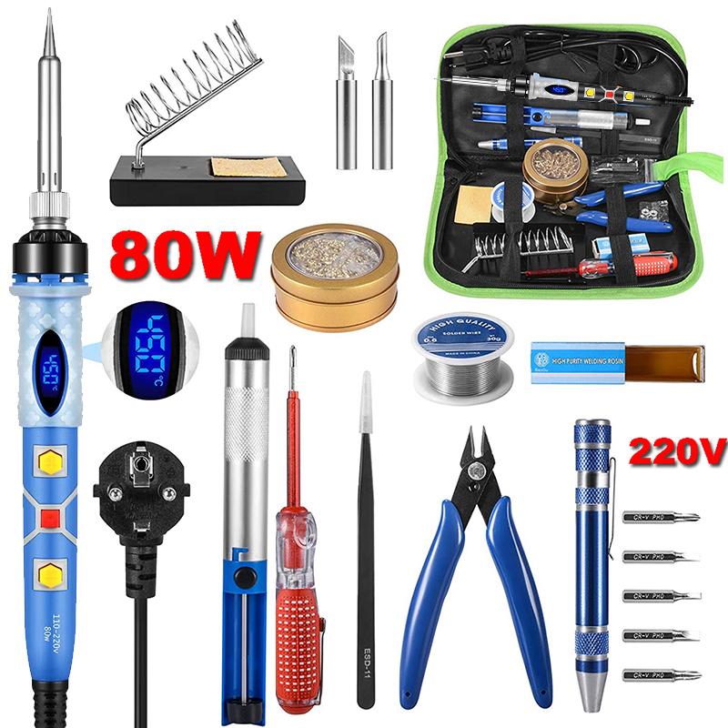 Комплект паяльника 80 Вт Регулируемая температура Сварочный инструмент с выключателем ВКЛ-ВЫКЛ Флюсовая паста Очиститель наконечников Паяльная станция LED — купить товар онлайн с бесплатной доставкой по всему миру!