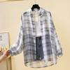 Женская тонкая клетчатая рубашка, повседневная блузка с длинным рукавом, солнцезащитное шифоновое пальто, женский кардиган на пуговицах, универсальная рубашка, топы Y2k