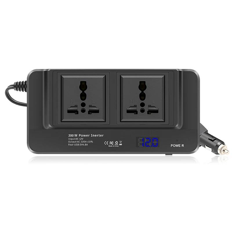 Автомобильный инвертор постоянного тока 12 В в переменный ток 220 В 200 Вт, автоматический преобразователь, зарядное устройство с быстрой зарядкой через USB, адаптер питания с розеткой ЕС