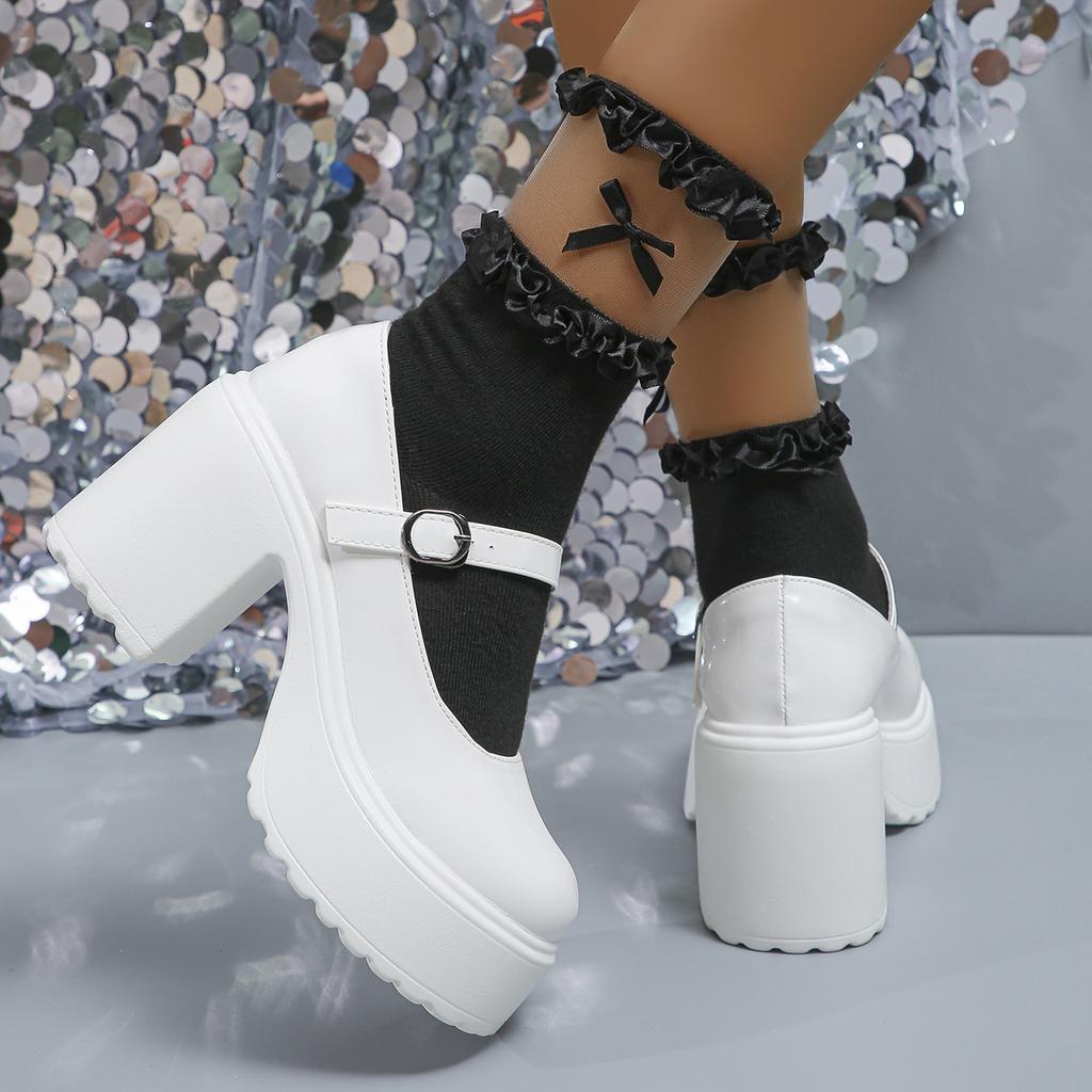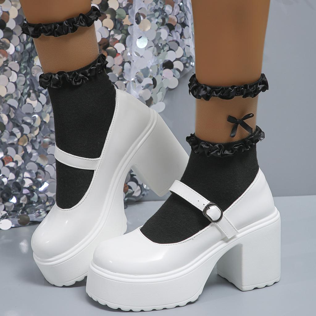 Модные белые туфли Мэри Джейн на очень высоком каблуке для женщин из лакированной кожи на толстой платформе, женские готические туфли с пряжкой на ремне в стиле Лолита