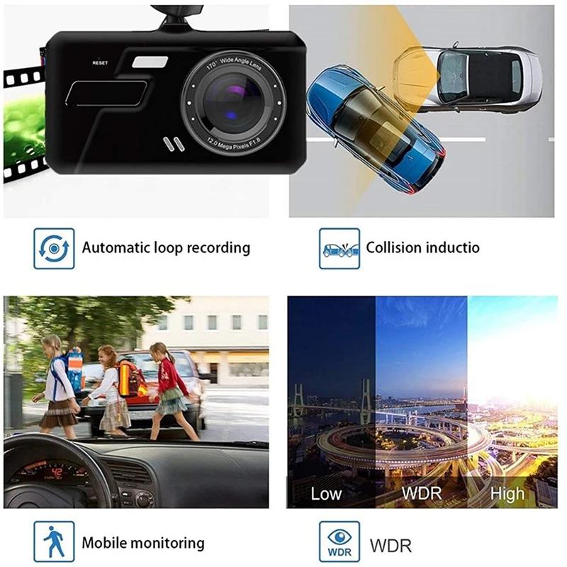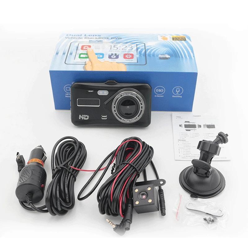 4-дюймовый сенсорный экран видеорегистратор 1080P автомобильный видеорегистратор с двумя объективами автомобильная камера видеорегистратор широкоугольный видеорегистратор задняя камера ночного видения
