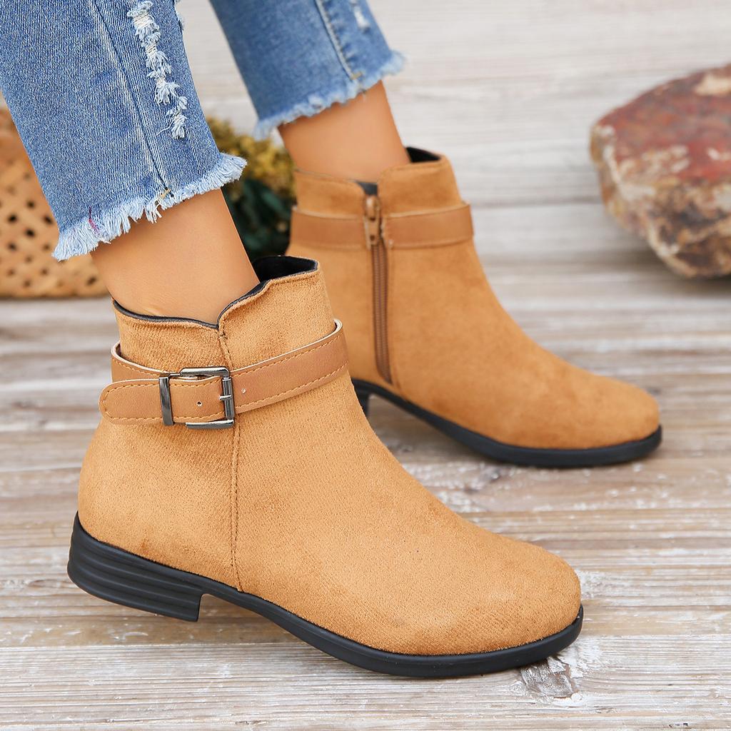 Модные коричневые ботильоны на низком каблуке для женщин, короткие ботинки с пряжкой и ремешком, весна-осень, повседневная рабочая обувь Botas Mujer 2024