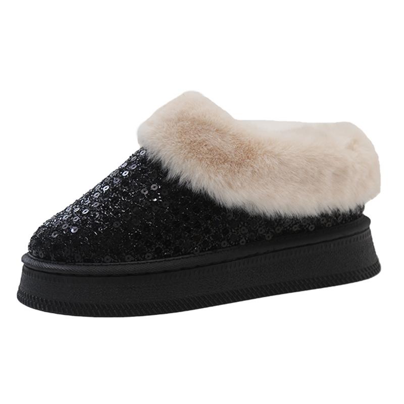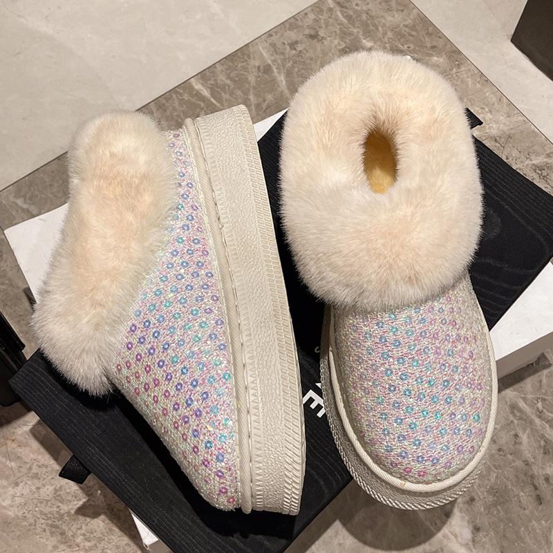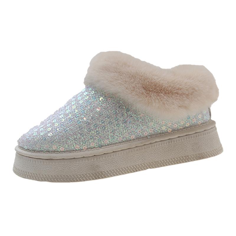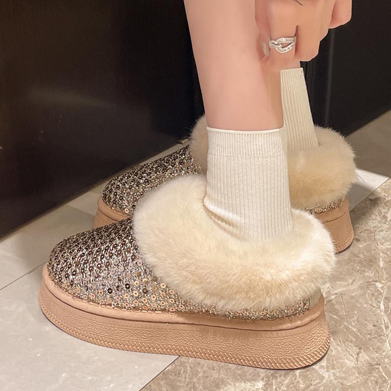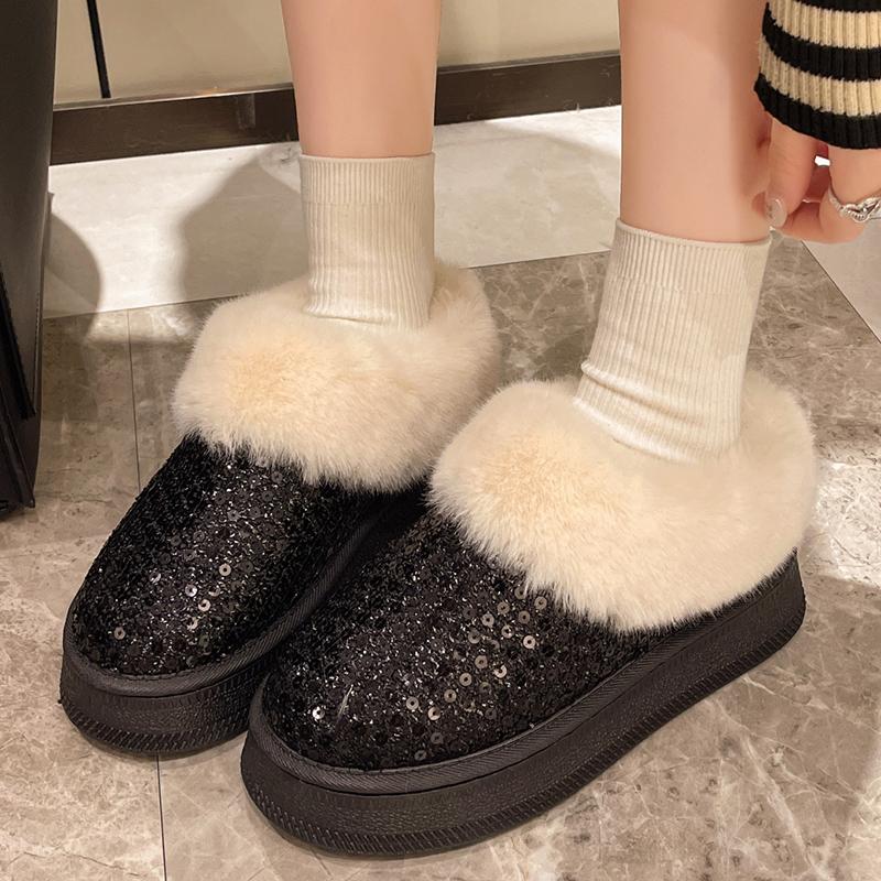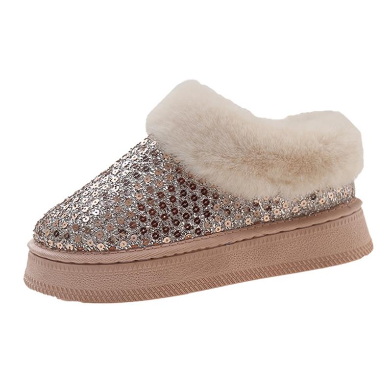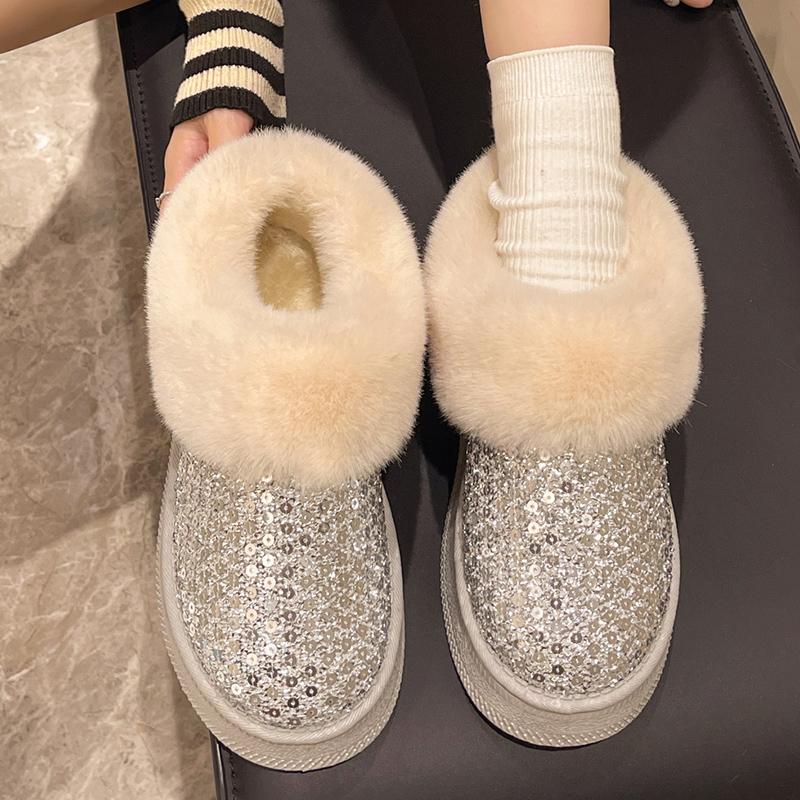 Модные женские пушистые сапоги из искусственного меха для снега с блестками, ботильоны на платформе без застежек, женские ботильоны на толстой подошве из плюша, теплые зимние ботинки Mujer