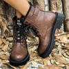 Мода женские модные армейские ботинки черные ботильоны на платформе со шнуровкой женские осенне-зимние пряжки нескользящие ботинки из искусственной кожи 2024