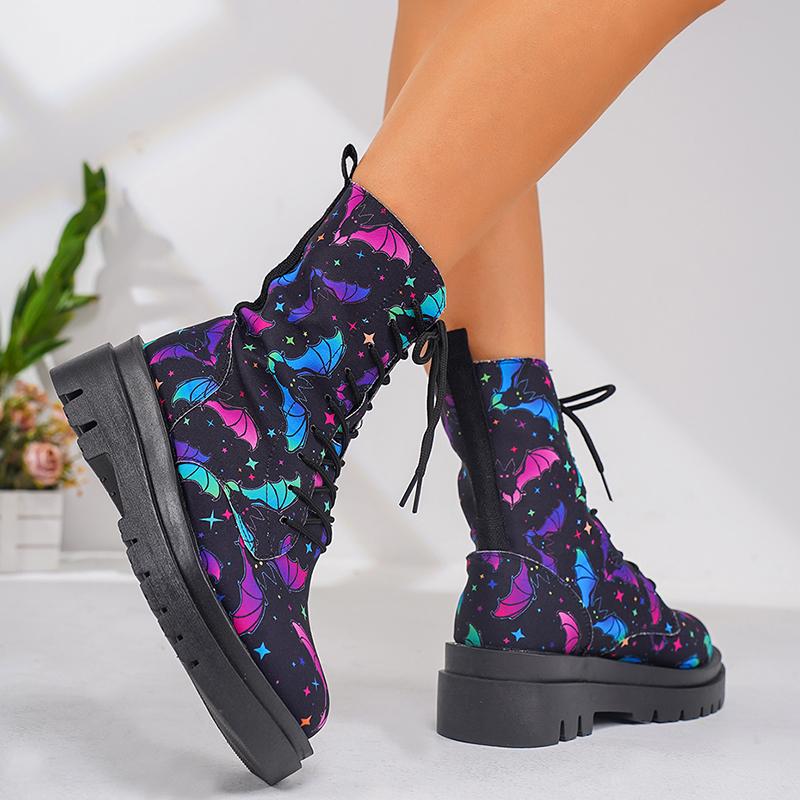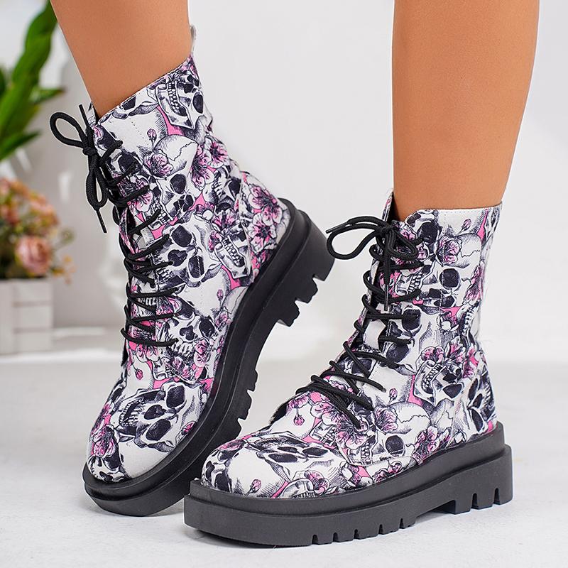 Мода Женская мода Граффити Печатный Ботильоны Платформа Шнуровка Плоский Ботинки Армейские Женские Нескользящие Кожаные Короткие Ботинки Mujer