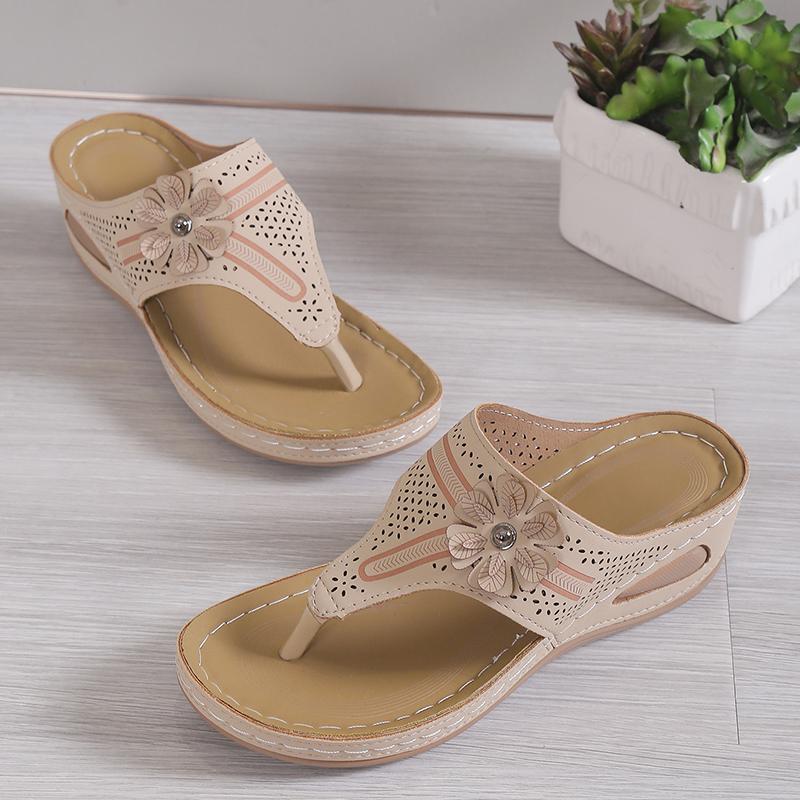 Мода Модные шлепанцы с цветами на платформе для женщин 2024 Летние сандалии на танкетке с клипсой Женские нескользящие пляжные тапочки для отдыха на открытом воздухе