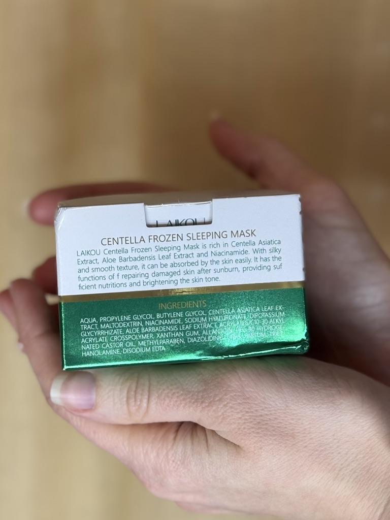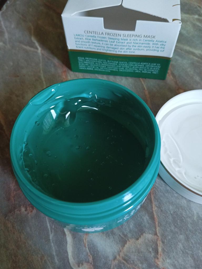 Маска с экстрактом центеллы 👍 Маска очень понравилась, кожа после неё увлажнённая. Она борется с черными точками и глубоко увлажняет кожу. Аромат приятный. Приходит маска в коробочке, коробочка запечатана в слюду. Маска имеет прозрачный вид с зеленым оттенком. Основные ингредиенты: Экстракт листьев центеллы азиатской, Ниацинамид, гиалуронат натрия, экстракт листьев алоэ барбаденсис. Хорошо увлажняет, если использовать её на ночь. Маска уменьшает покраснения, увеличивает сияние, делает кожу гладкой и осветляет. Маска быстро впитывается и не делает кожу жирной. Способы применения: В качестве крема для лица. Используйте после основного ухода за кожей, нанесите немного на лицо и помассируйте, пока кожа не впитает его. Использовать в качестве маски для сна. После очищения равномерно нанесите необходимое количество маски на все лицо и через 20 минут смойте. Восстановление поврежденной солнцем кожи. Нанесите его на кожу на 15-20 минут, затем смойте. Доставка около месяца. Трек-номер отслеживался. К покупке рекомендую 👍