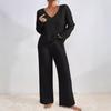 Женский комплект из свободного повседневного топа с длинными рукавами, V-образным вырезом, полосатым узором и брюками, комплект из 2 предметов