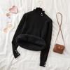 Цельный бархатный базовый слой с утолщенным флисом, осенне-зимний трикотажный свитер, женский пуловер, грибок, полувысокий ворот, дизайн с пуговицами