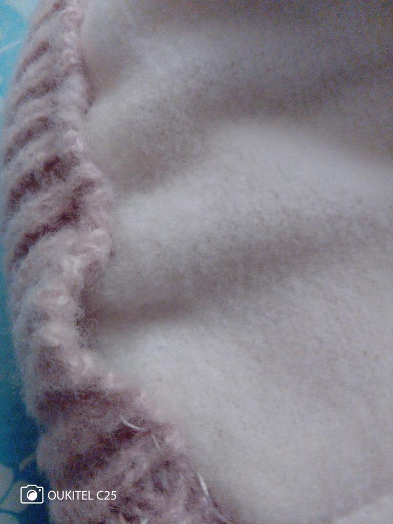 Некачественно пришит козырек ,подклад - утеплитель на розовой кепке меньше чем сам трикотажная кепка ,брак выписала 2 штуки и не удачно ,обе с браком ,хотя пряжа приятная , мягкая ,,,, ничего не изменилось ,как я могу е ими пользоваться ,если они бракованные , только выбросить ,хотя до этого заказывала бежевую мне прислали хорошего качества ,а эти только на выброс ,брак