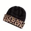 Зимняя вязаная шапка с леопардовым принтом, ветрозащитная повседневная модная теплая шапка-бини в стиле хип-хоп, эластичная переносная зимняя шапка